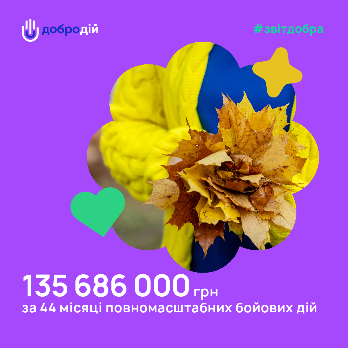 Since the beginning of Russia's full-scale invasion of Ukraine, the charity exchange 'DobroDiy' has provided assistance totaling UAH 135,686,000.