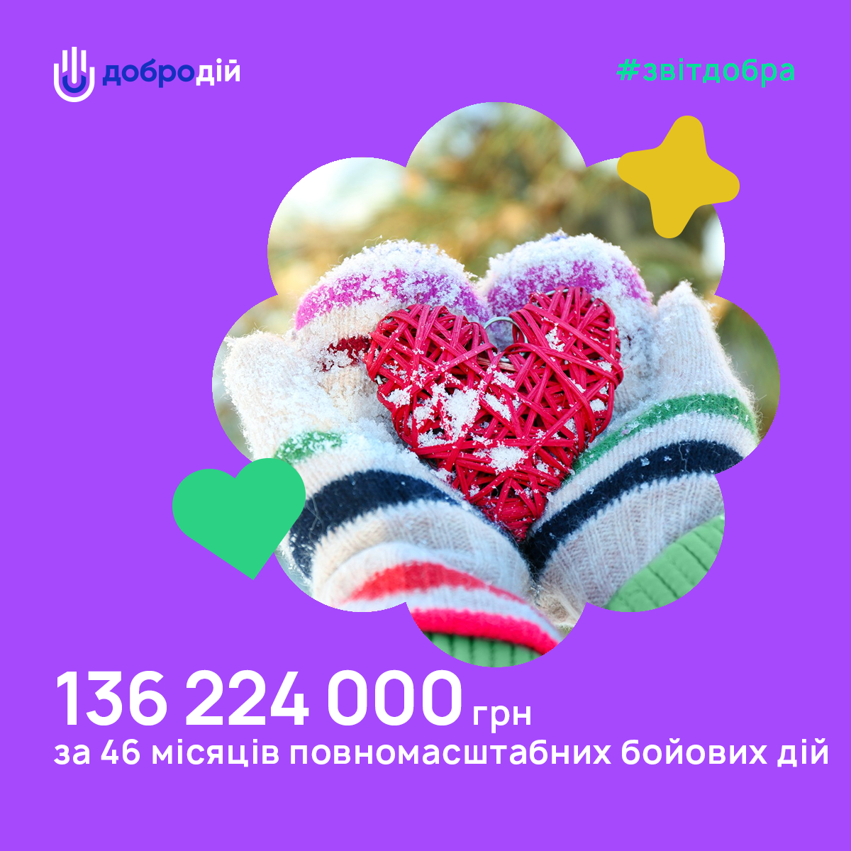 Since the start of the full-scale war in Ukraine, the Charity Exchange 'DobroDiy' has provided UAH 136,224,000 in charitable assistance.