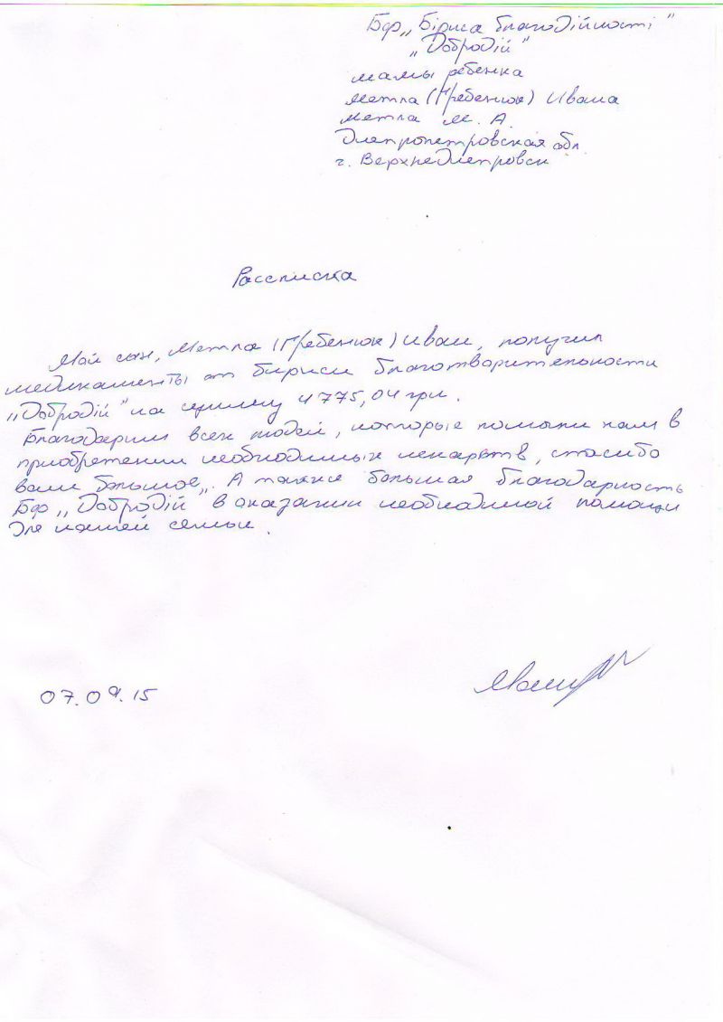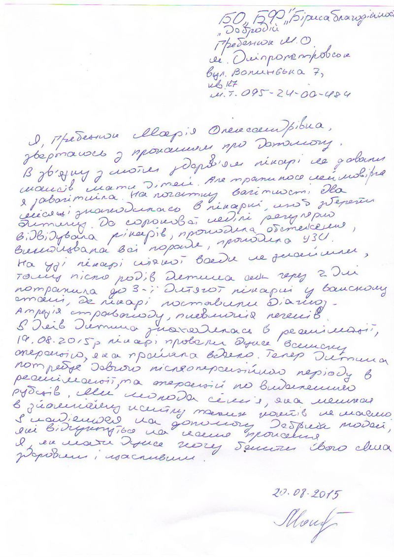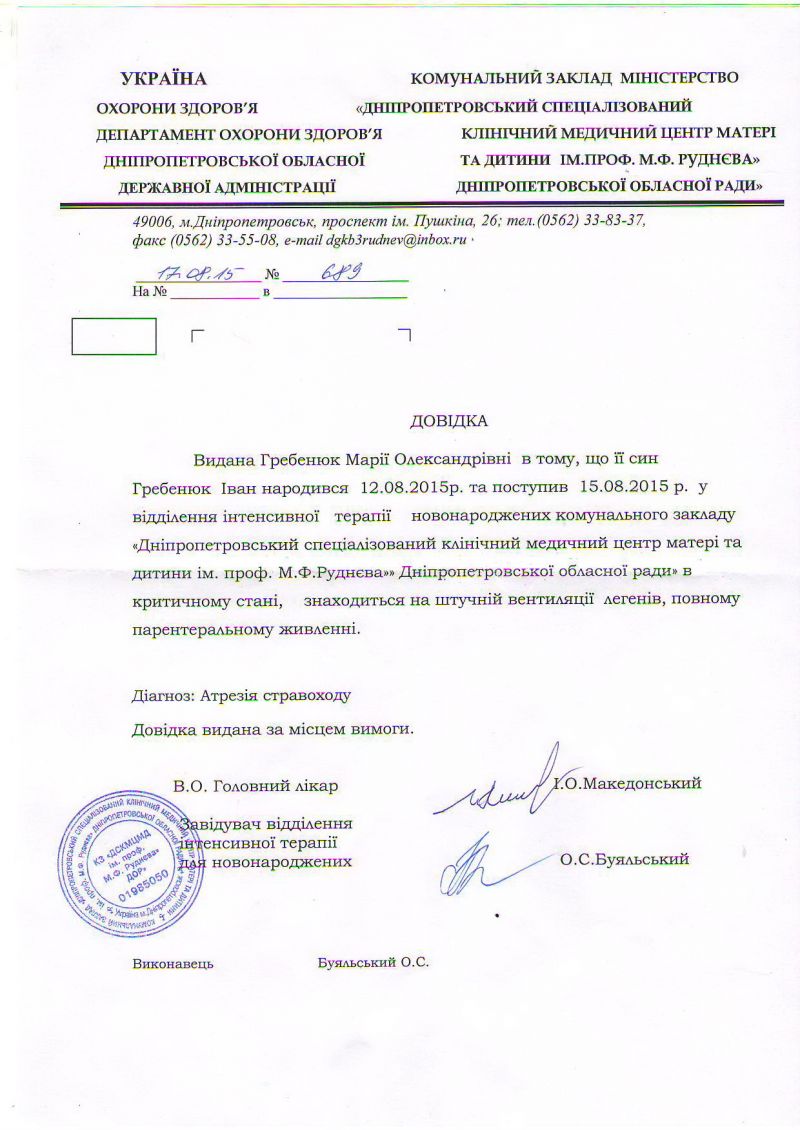 Ваня Гребенюк родился всего неделю назад, ровно в срок и его выписали как абсолютно здорового мальчика. Но на 3-й день мама заметила, что он начал синеть, абсолютно отвергать всю еду и стремительно терять вес! Срочное тщательное обследование показало, что у ребенка – атрезия пищевода, то есть ПОЛНОЕ ОТСУСТВИЕ той его части, которая должна соединяться с желудком, чтобы еда поступала в него. Из-за этого, все, чем кормили малыша просто «падало» в легкие, загрязняя их, и привело еще и к пневмонии. Сейчас малышу провели операцию по «растяжки» пищевода, чтобы таки соединить его с желудком. Но впереди – как минимум, 2 тяжелых месяца в реанимации. Каждая неделя жизни Вани обходится родителям в тысячи гривен. Все ресурсы исчерпаны. Но без помощи – надежды на жизнь нет!Цель проекта – собрать 4 775, 04 гривен, чтобы обеспечить Ване внутривенное питание и антибиотики, чтобы он вернул потерянный вес, окреп и выжил