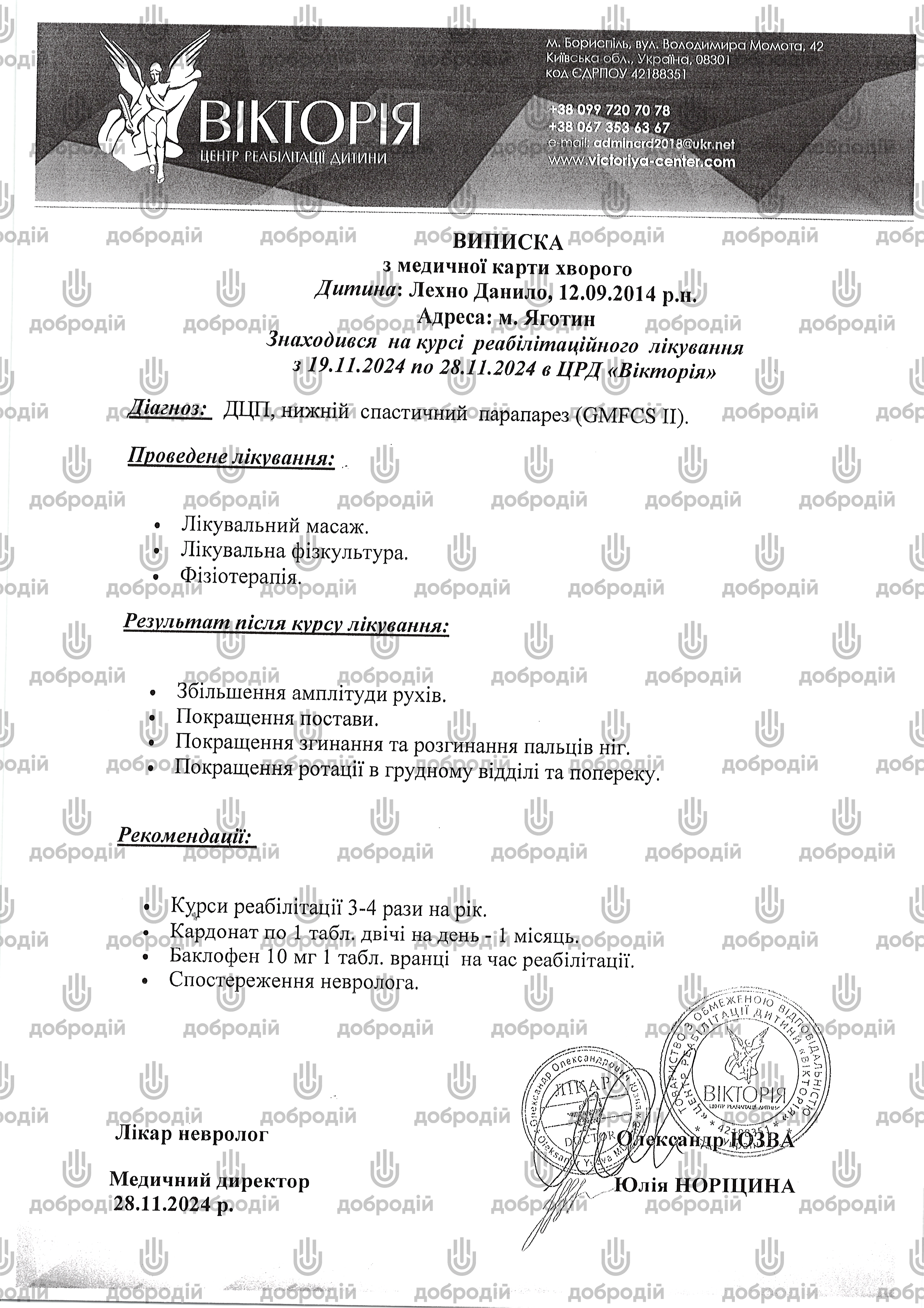 The project aims to raise UAH 25,000 to pay for the rehabilitation course at the REHABILITATION CENTER “VICTORIA”