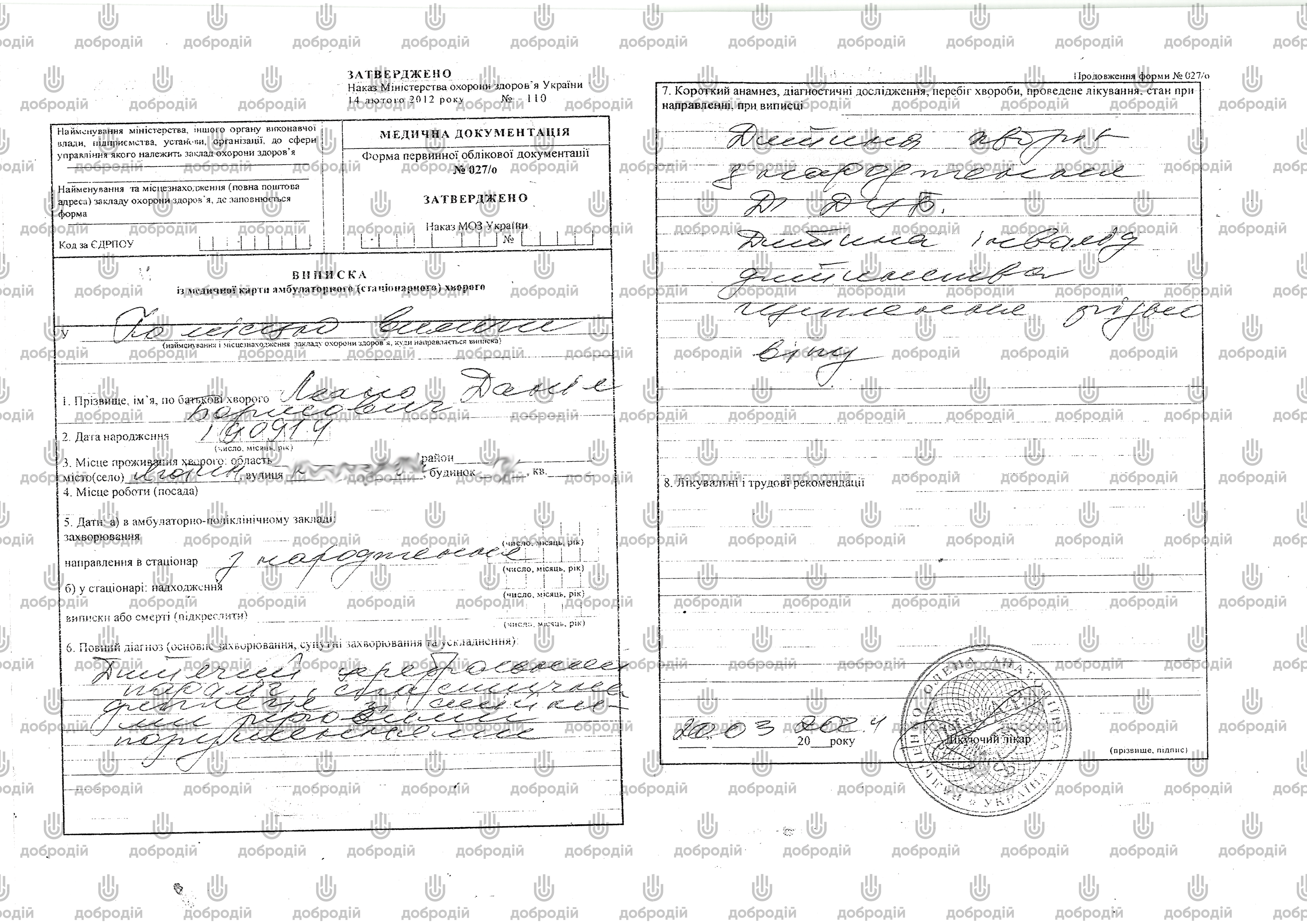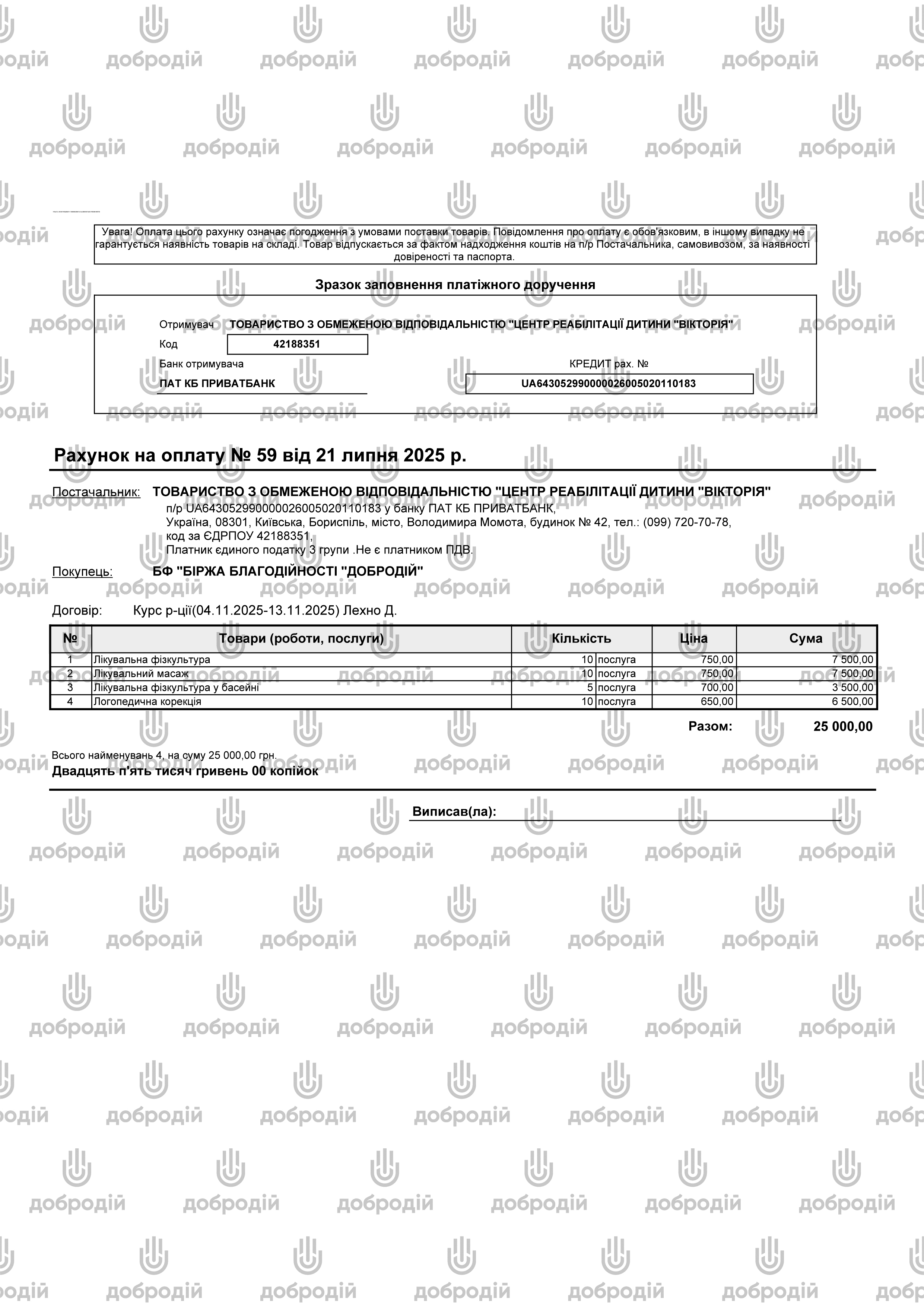 BENEFICIARY: CF "DOBRODIY" CHARITY EXCHANGE