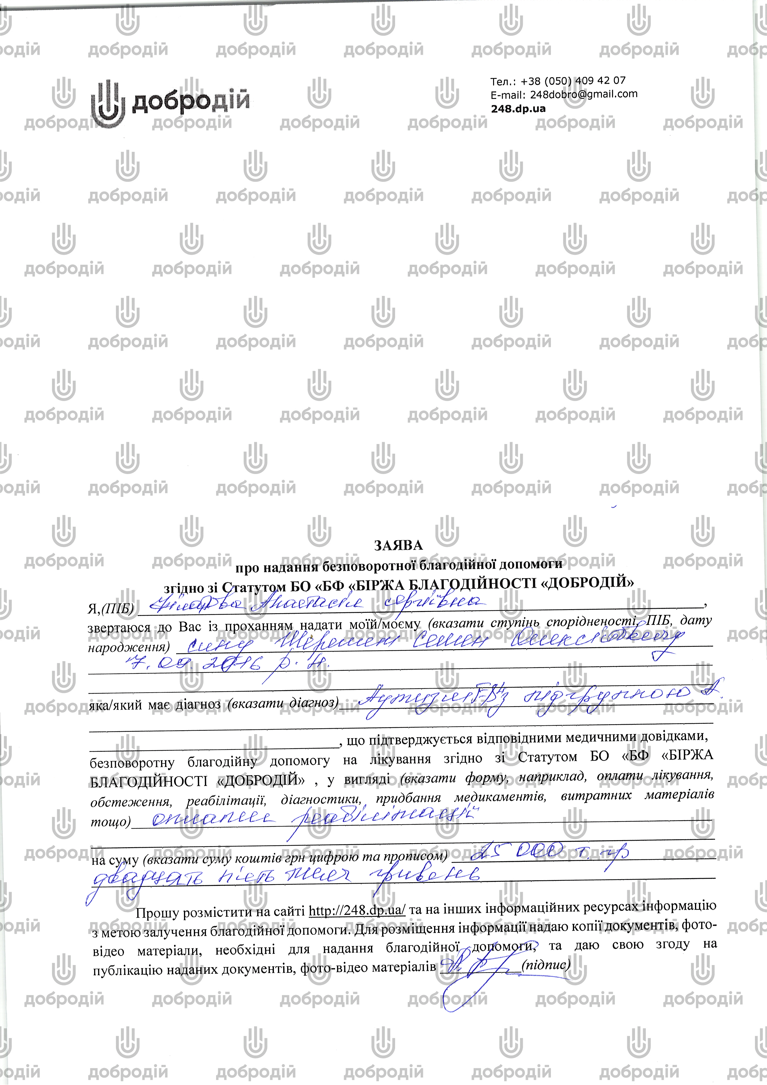 BENEFICIARY: CF "DOBRODIY" CHARITY EXCHANGEEDRPOU (National State Register) 39308149