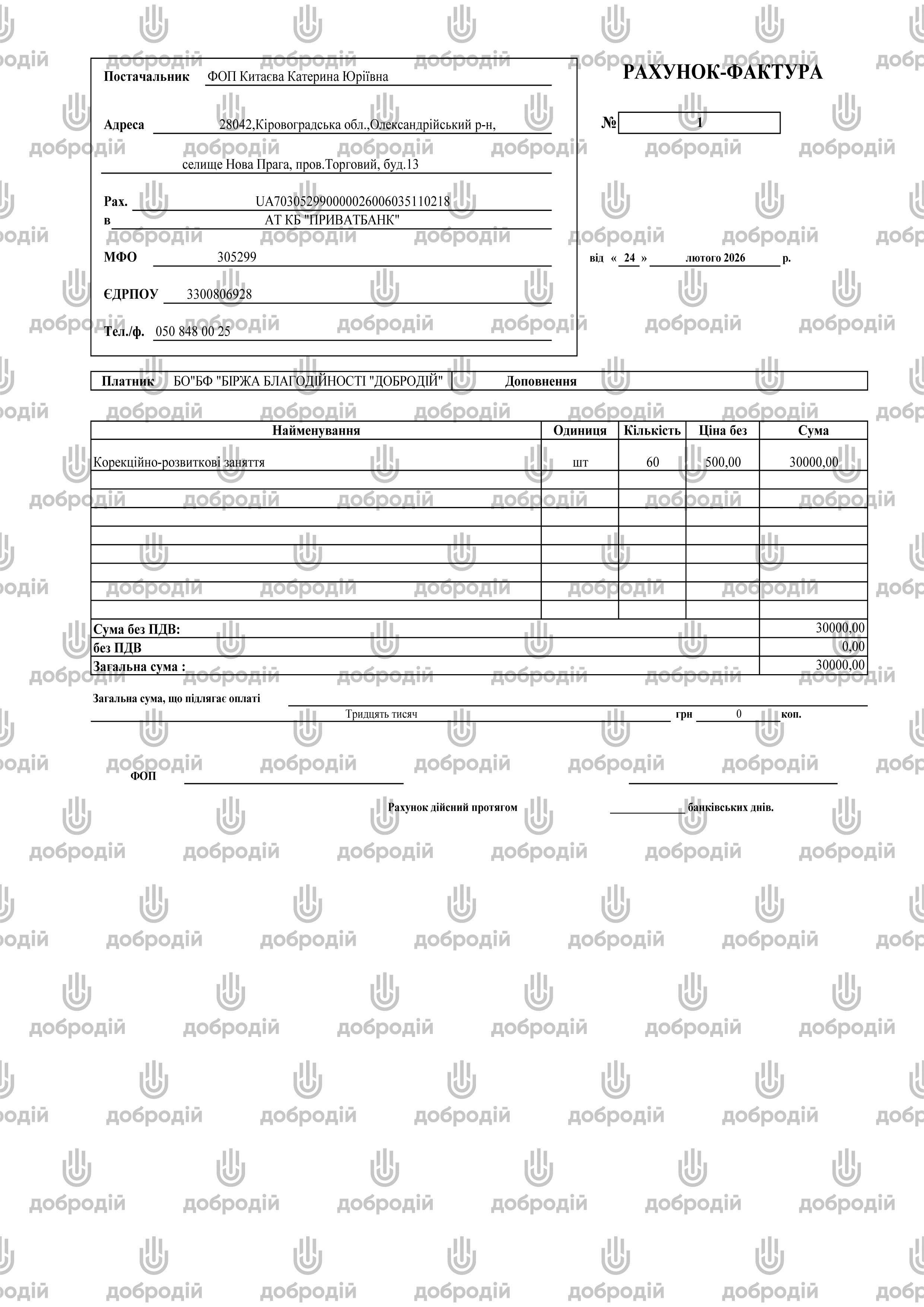 Recipient: Charitable Foundation “Charity Exchange ”Dobrodiy" EDRPOU 39308149