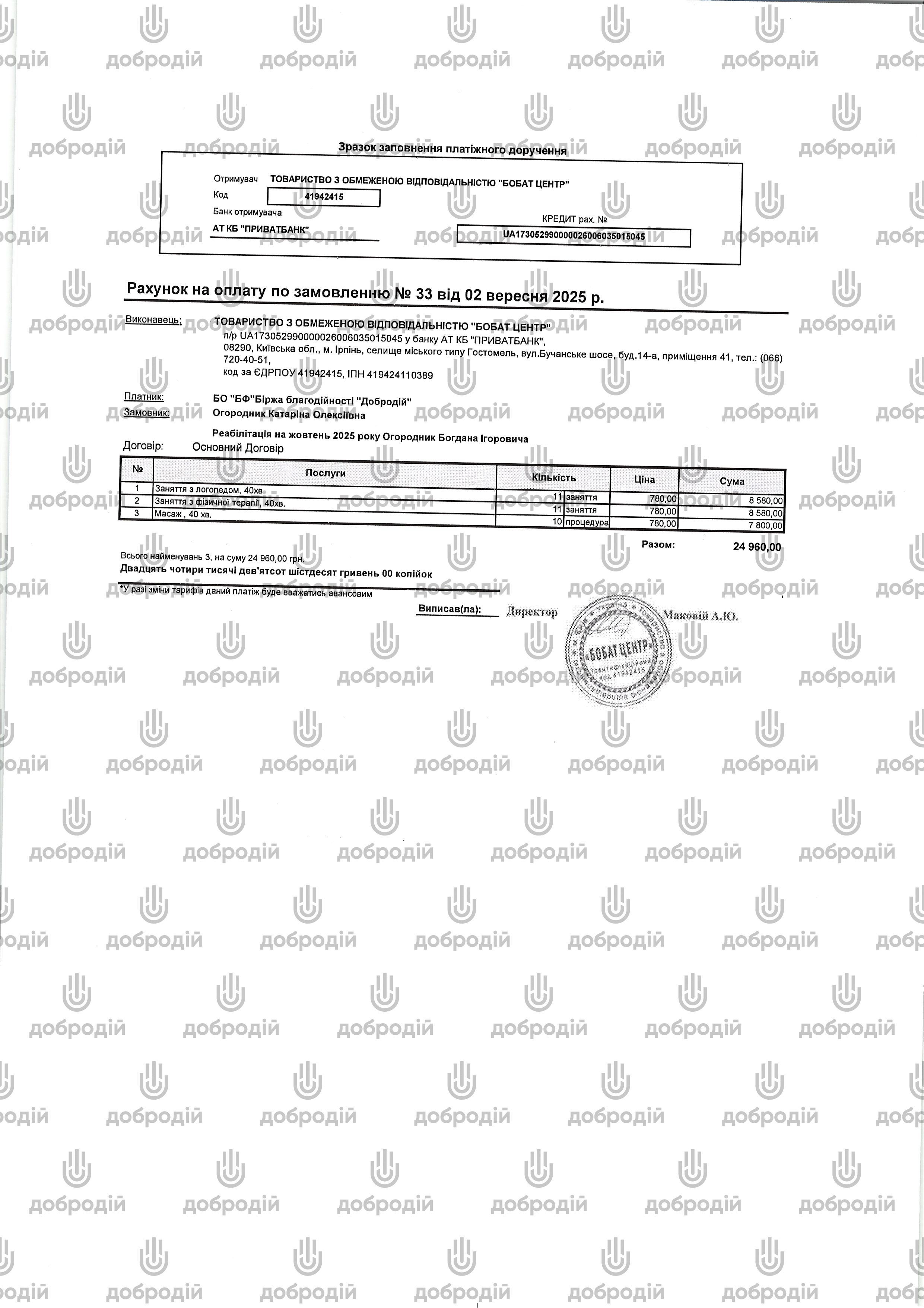 Отримувач: БФ «БІРЖА БЛАГОДІЙНОСТІ «ДОБРОДІЙ»