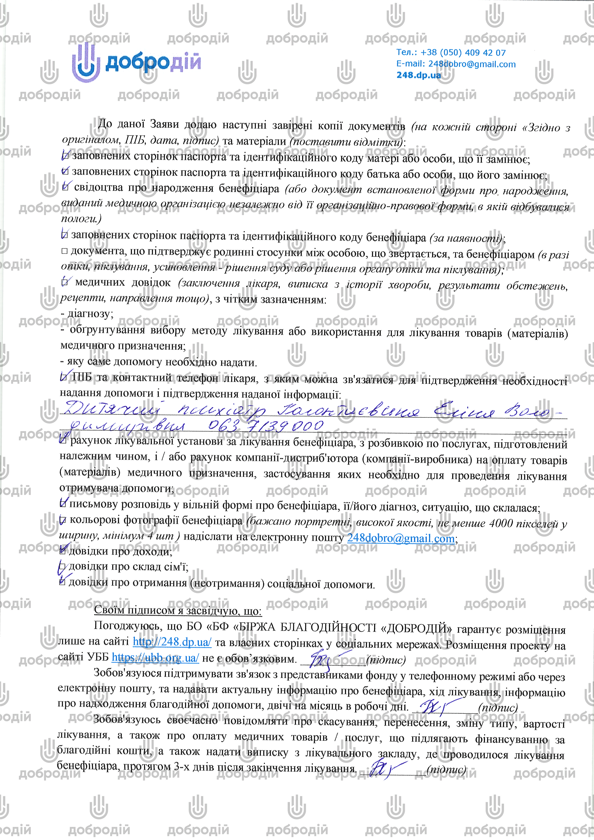 Отримувач: БФ «БІРЖА БЛАГОДІЙНОСТІ «ДОБРОДІЙ»