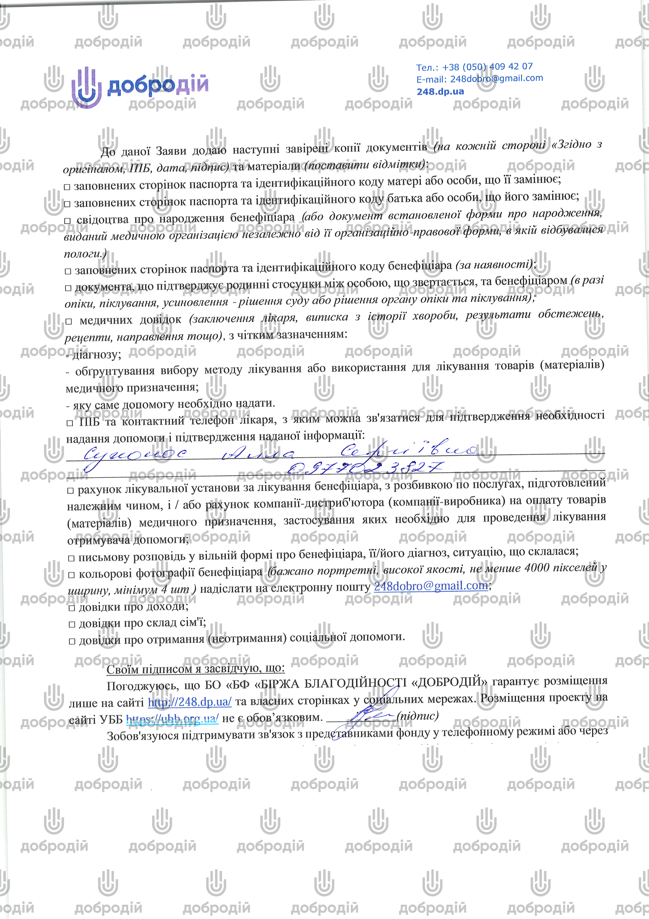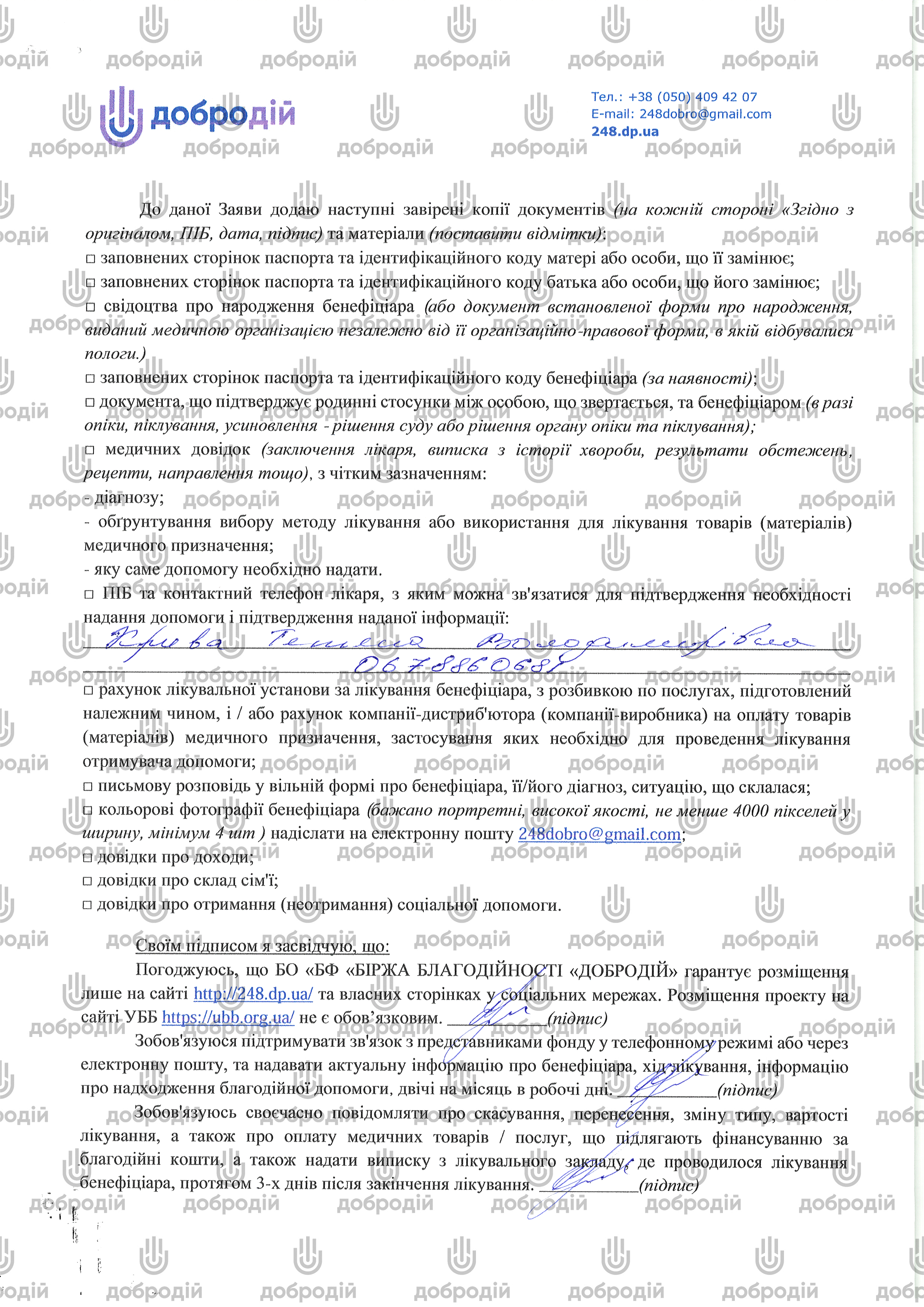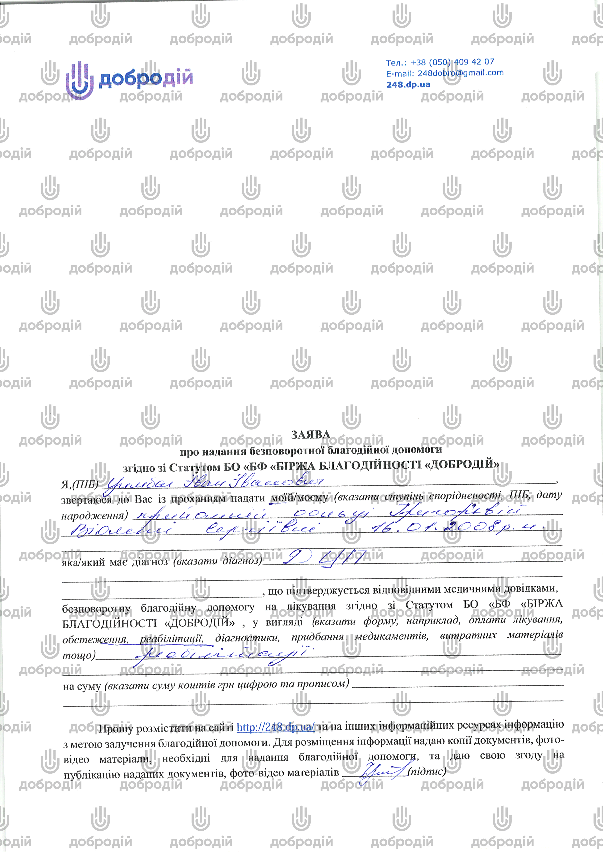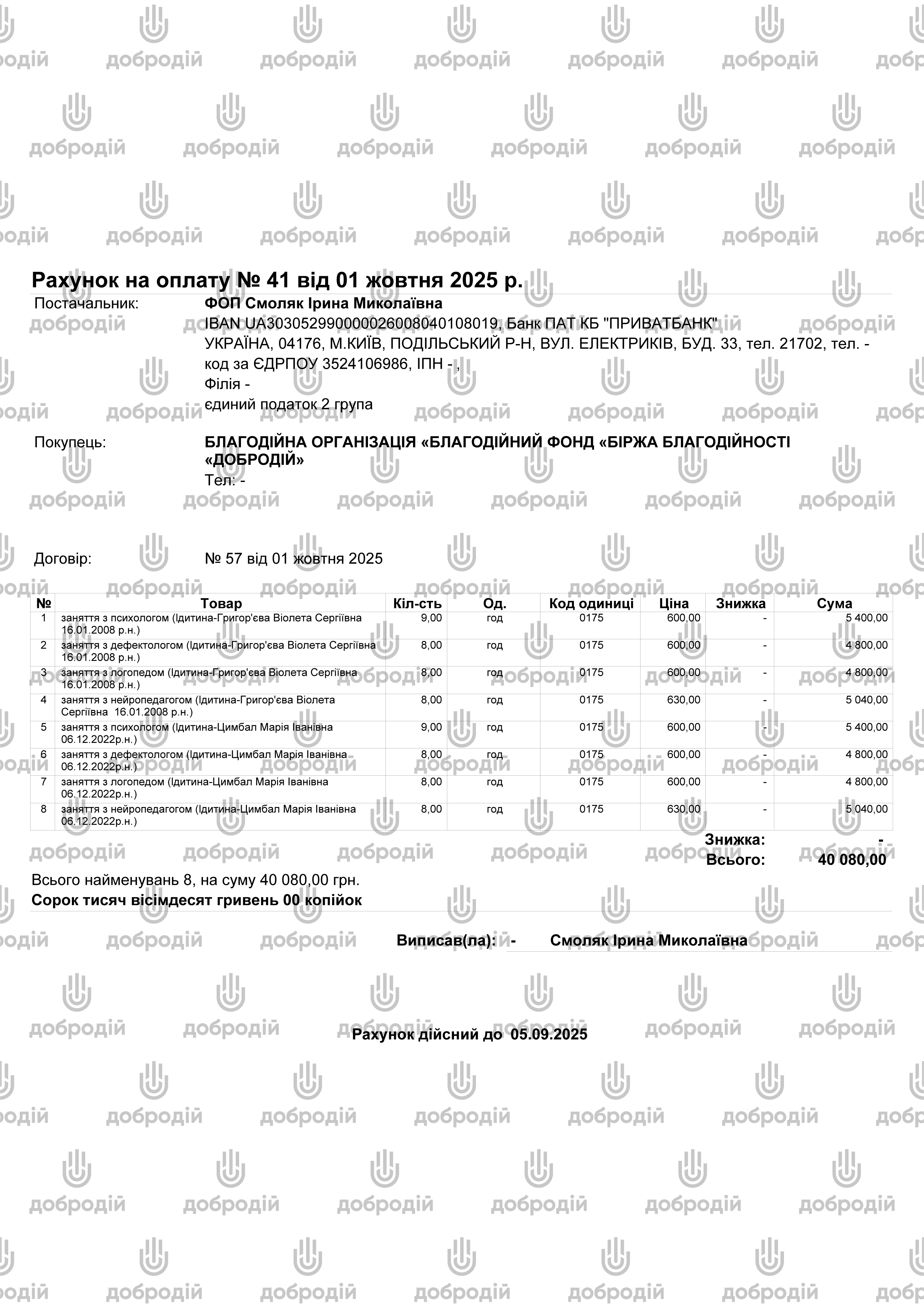 Отримувач: БФ «БІРЖА БЛАГОДІЙНОСТІ «ДОБРОДІЙ»