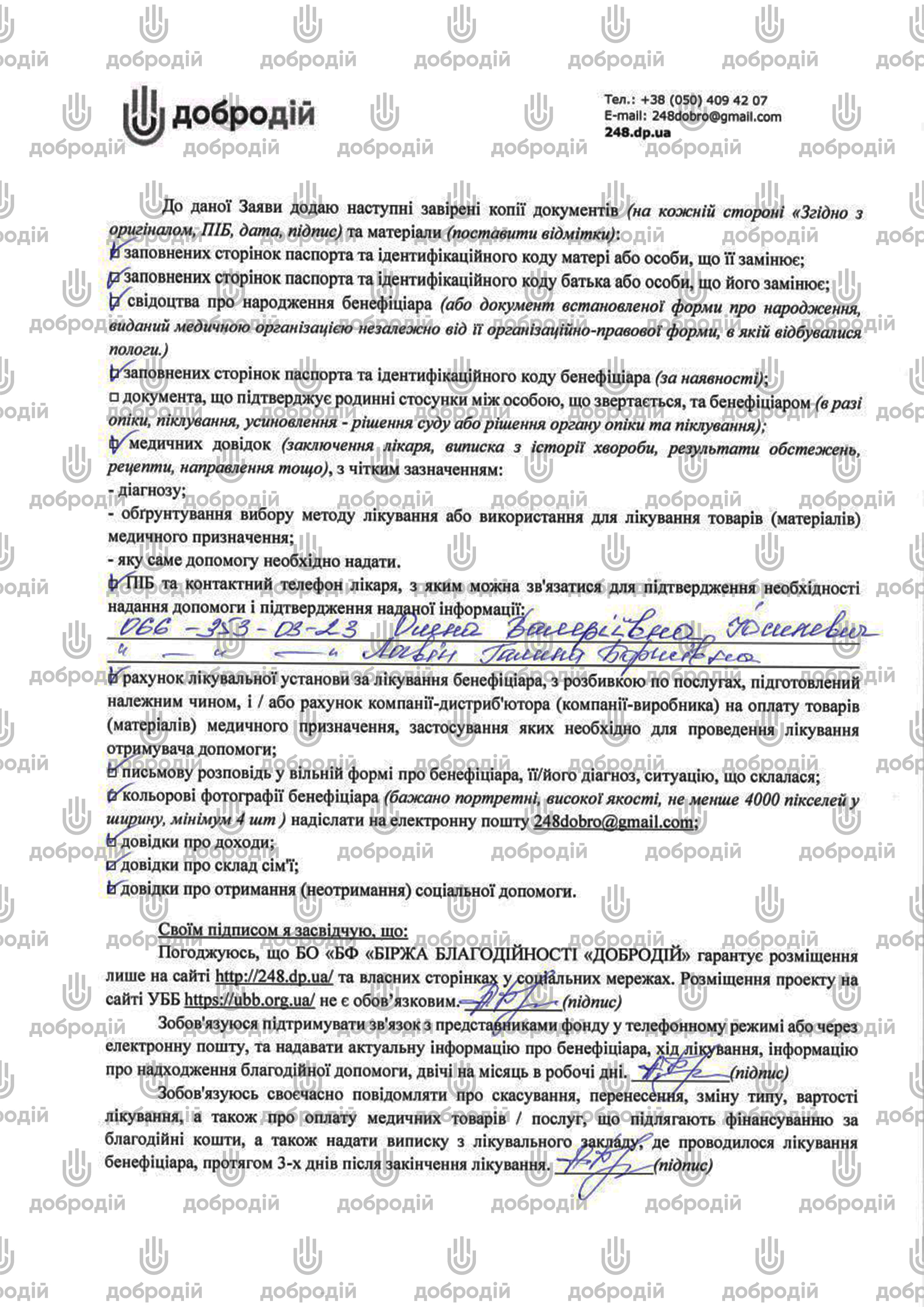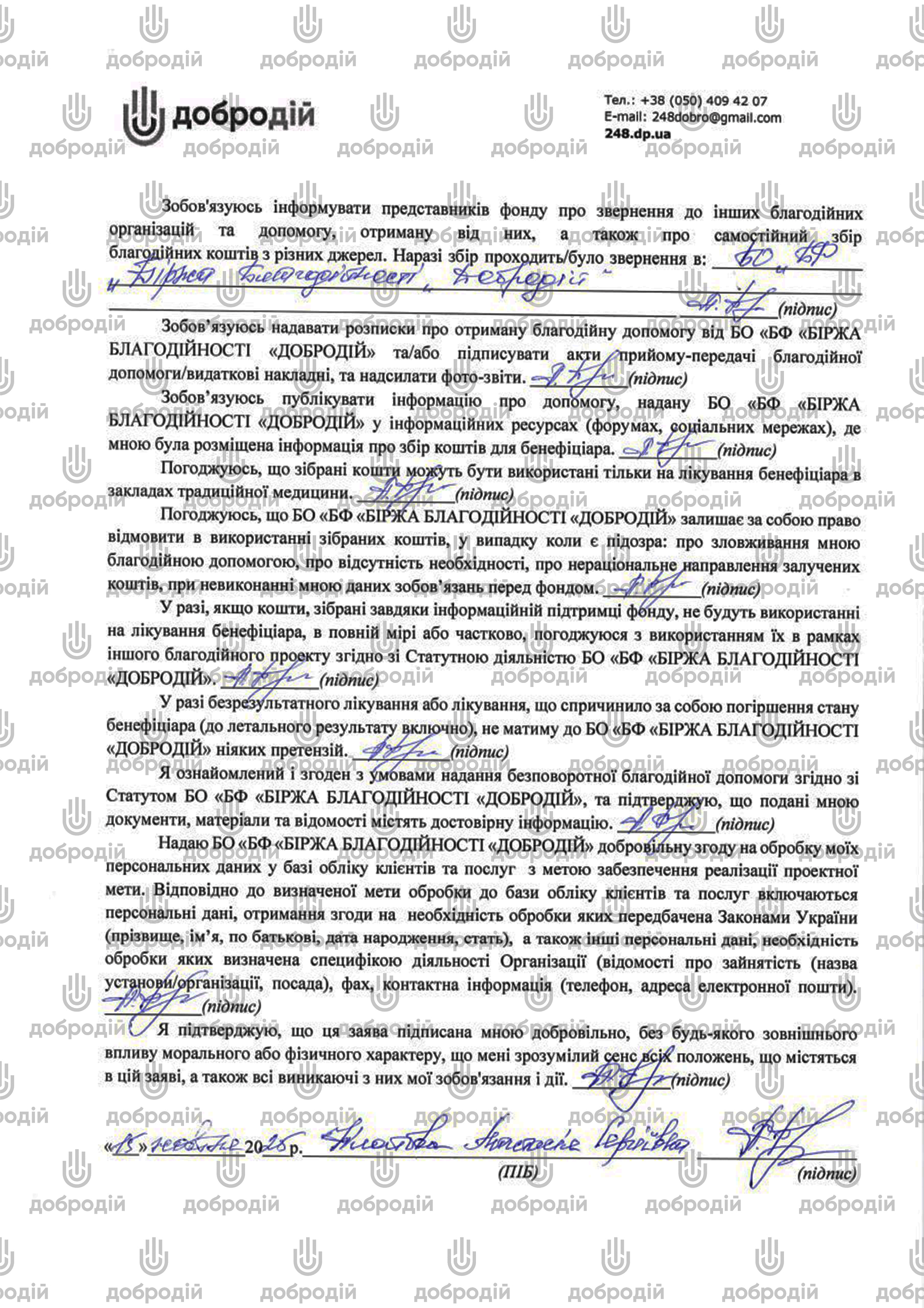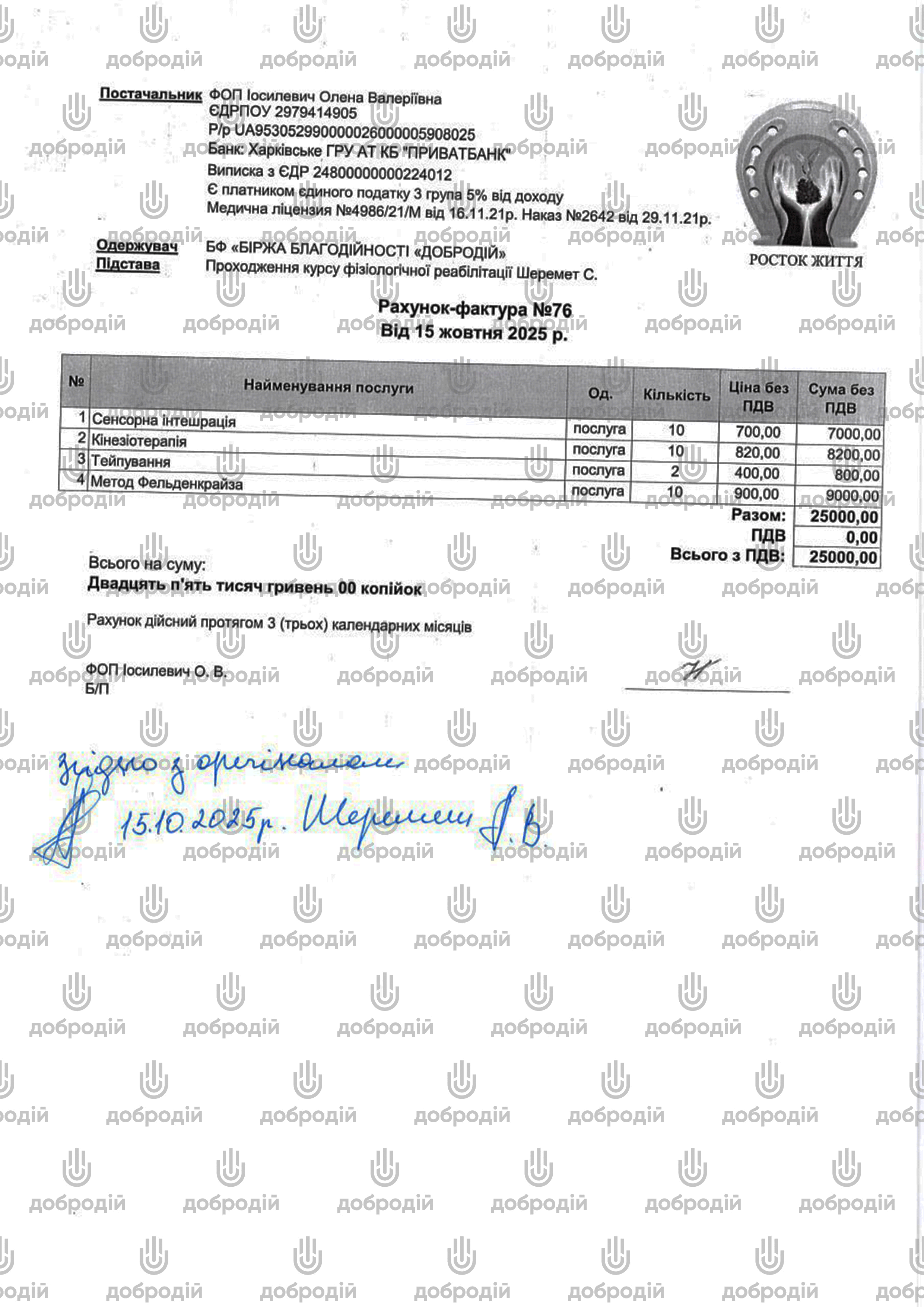 Отримувач: БФ «БІРЖА БЛАГОДІЙНОСТІ «ДОБРОДІЙ»
