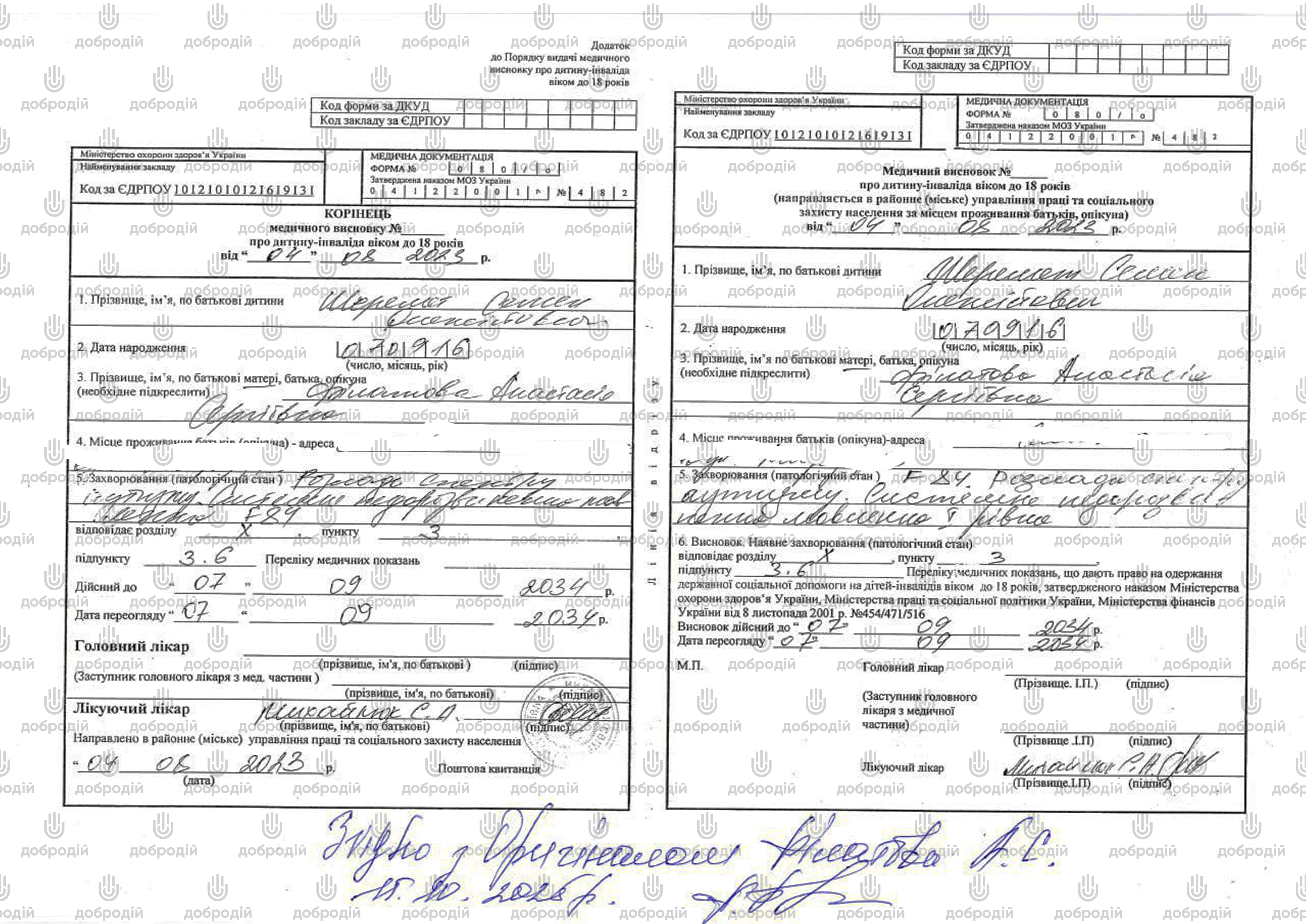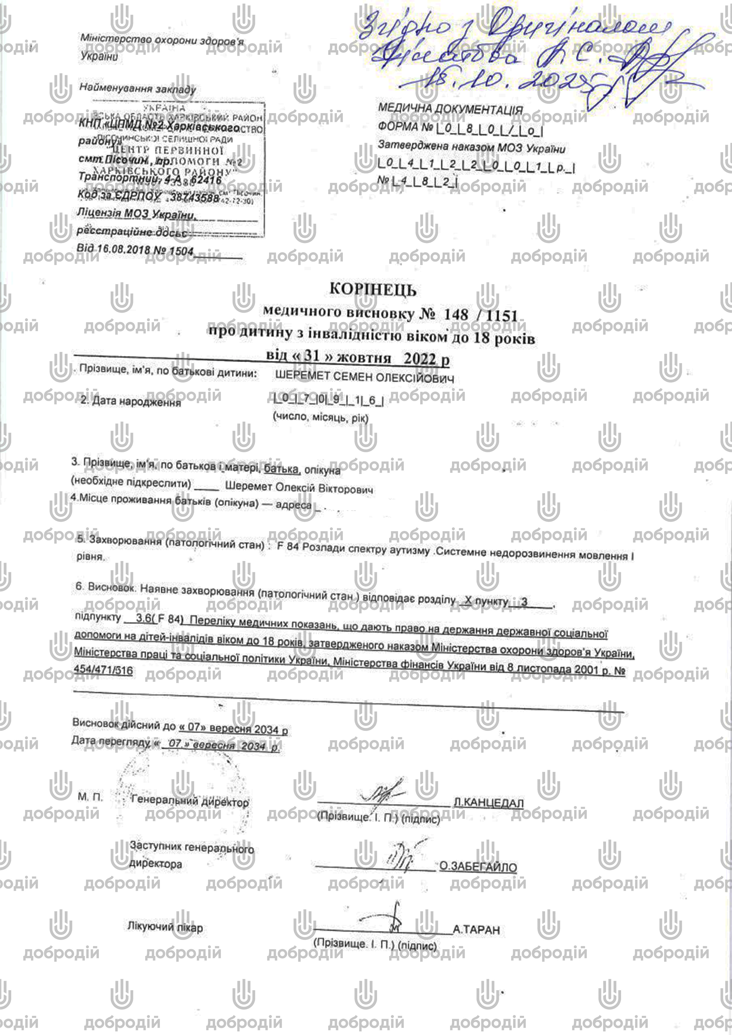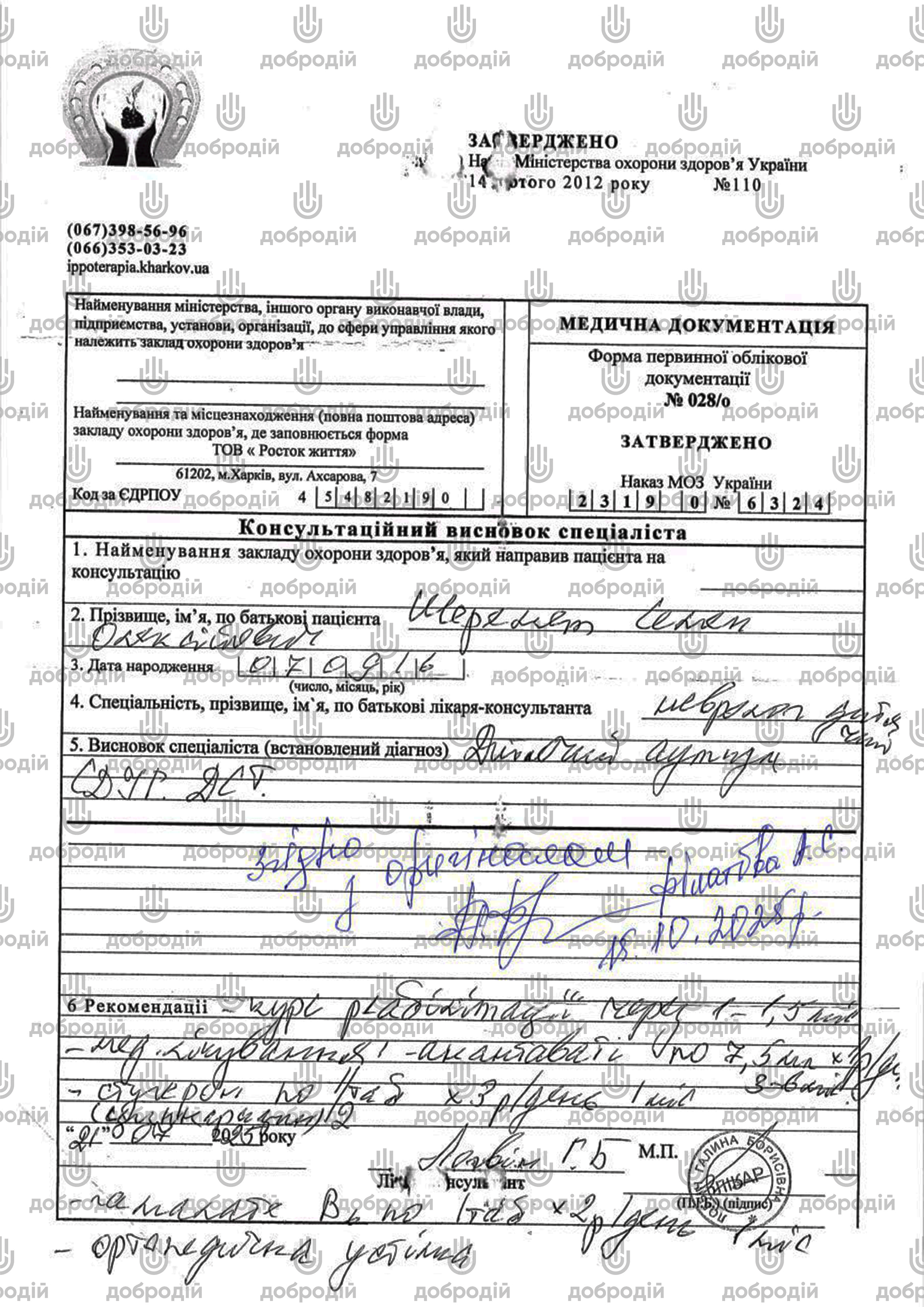 Діагноз: Дитячий аутизм. Системне недорозвинення мовлення. Синдром дефіциту уваги з гіперактивністю. Ознаки дисплазії сполучної тканини.