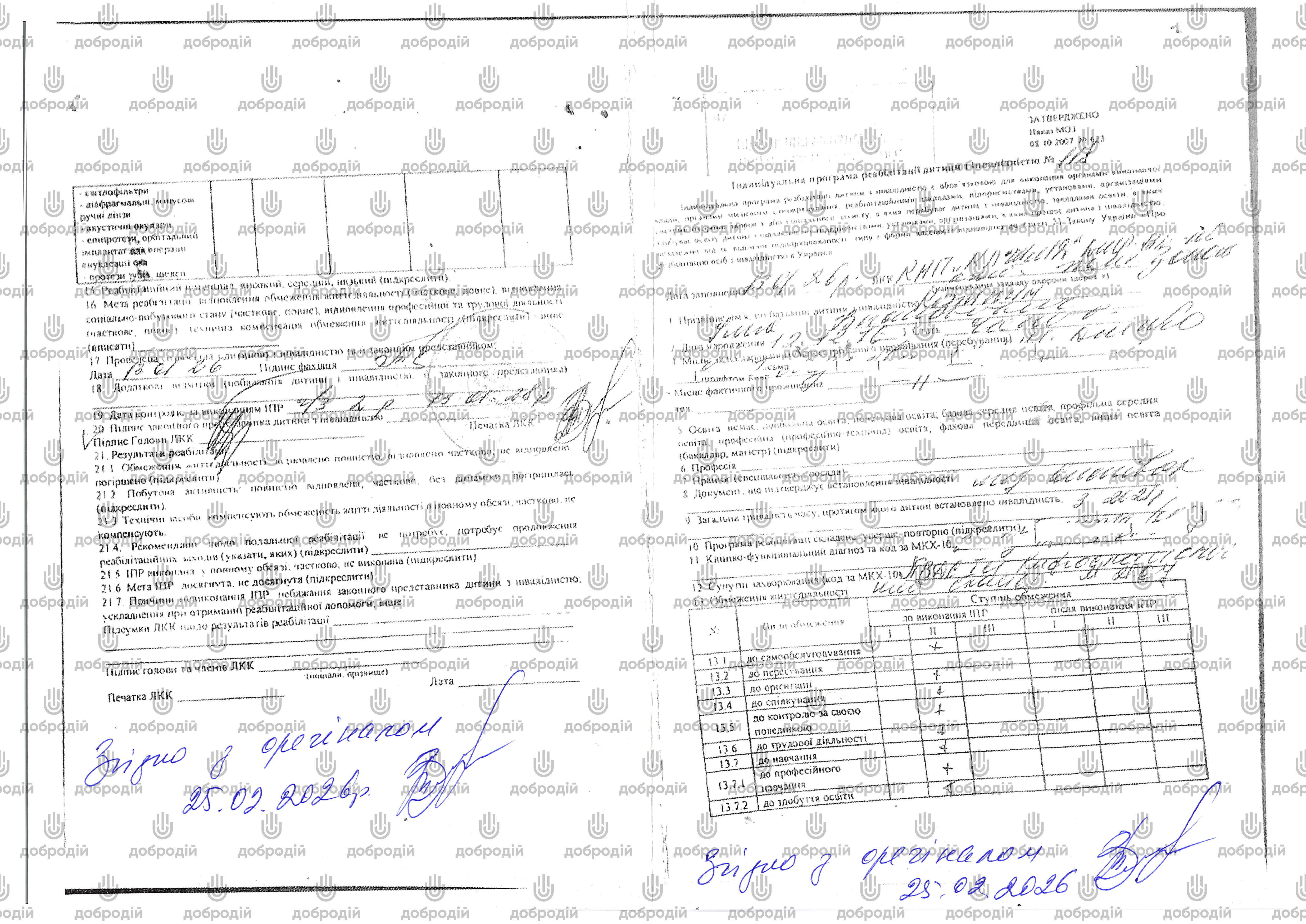 Діагноз: Помірна інтелектуальна недостатність (F71). Плоско-вальгусна деформація стоп I ступеня. Кіфосколіоз.