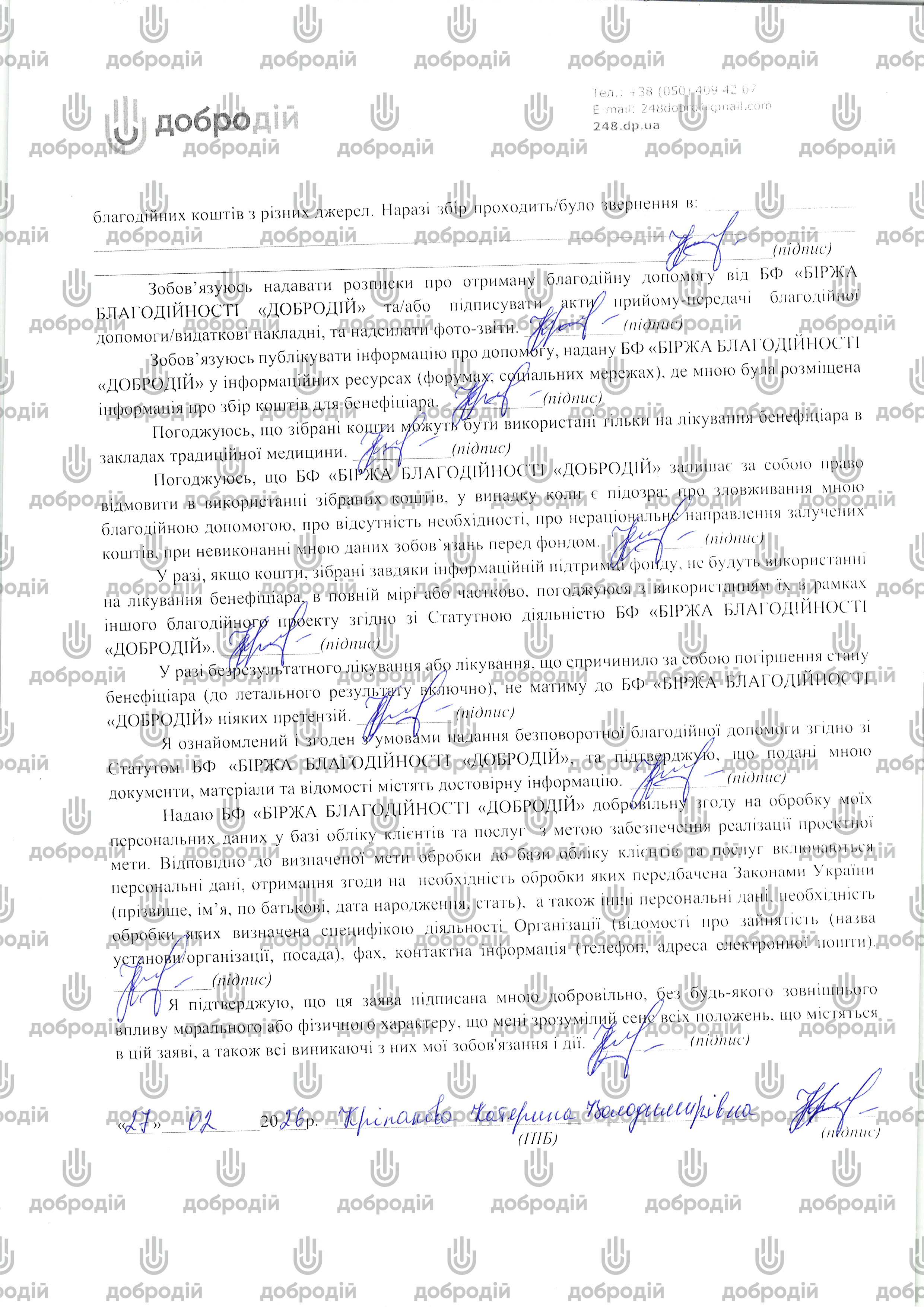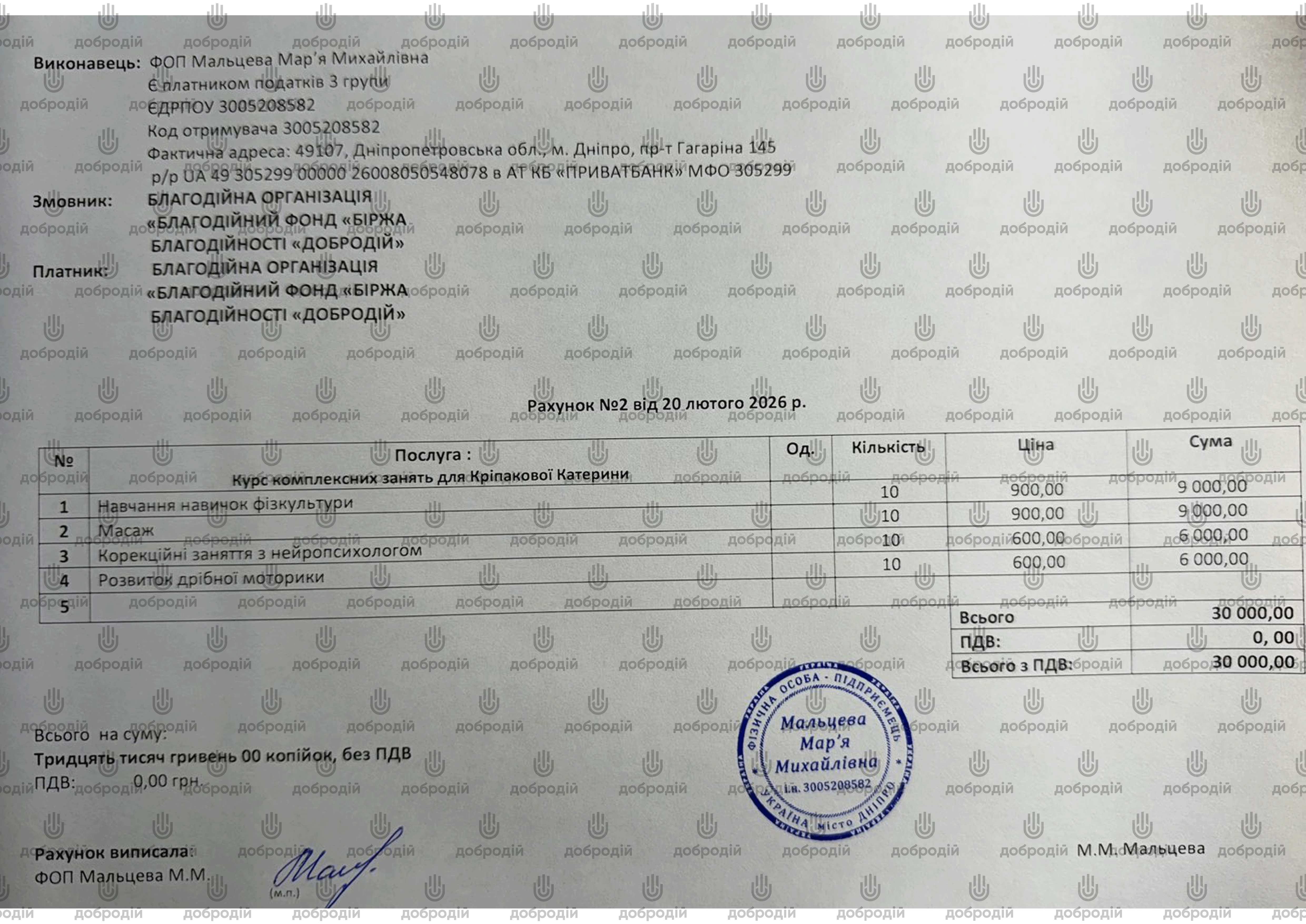 Отримувач: БФ «БІРЖА БЛАГОДІЙНОСТІ «ДОБРОДІЙ»
