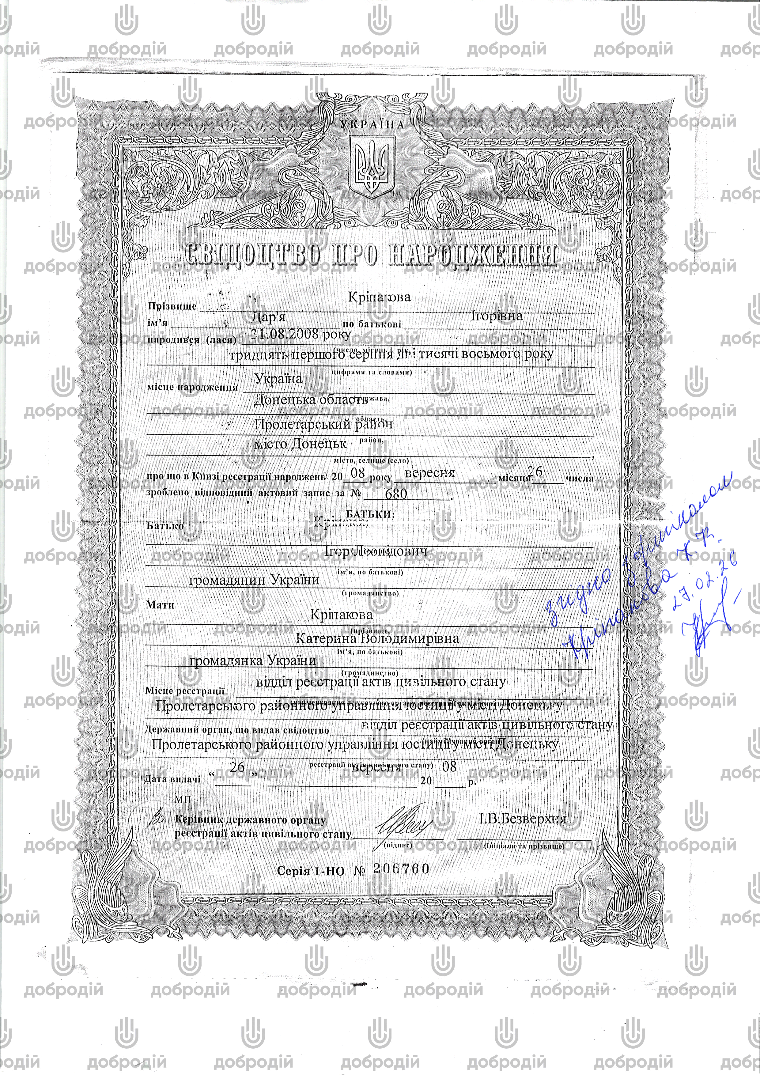 МФО 328209Призначення платежу: «Благодійний внесок для Дар’ї Кріпакової (проєкт № 1859)»