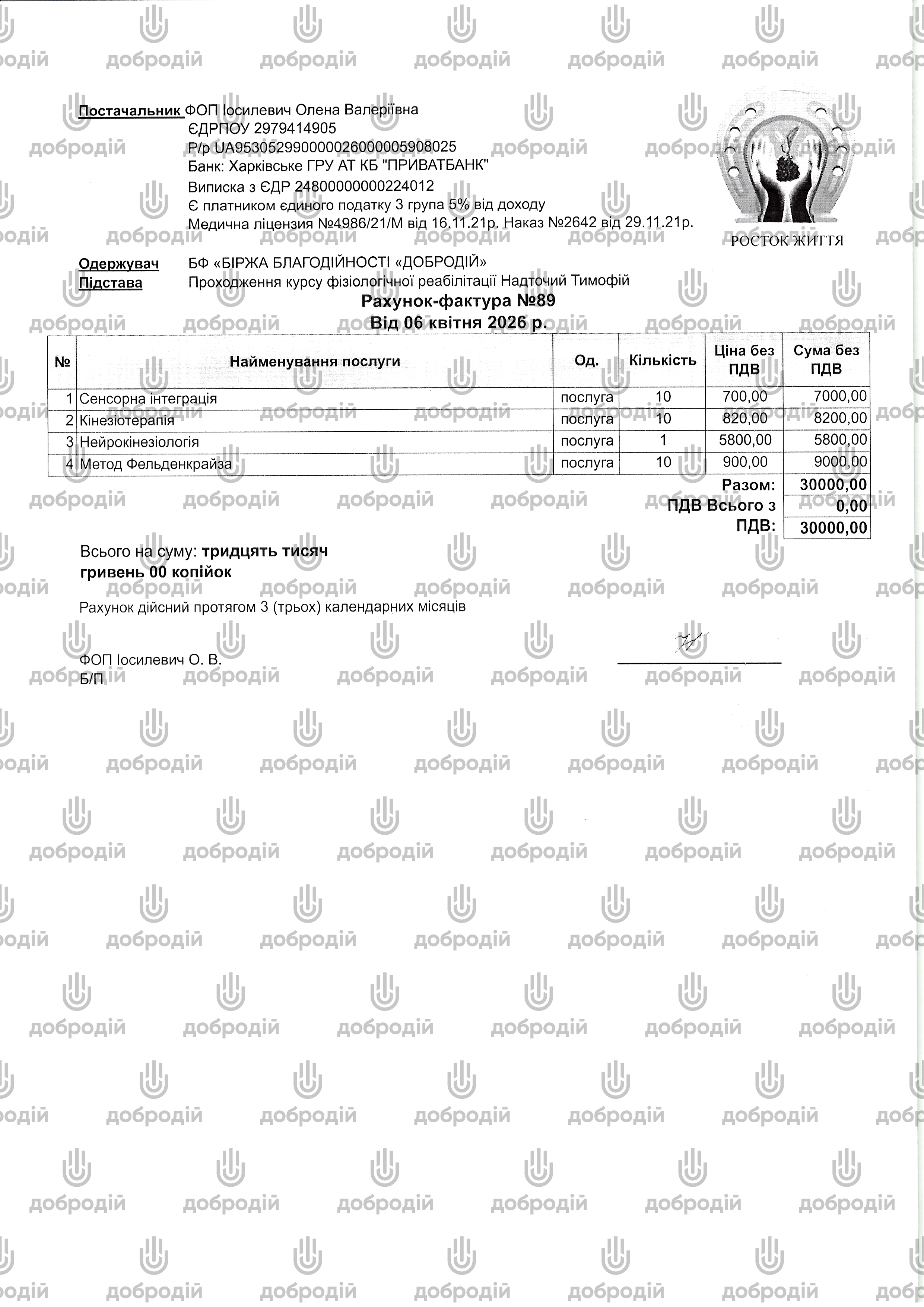 Отримувач: БФ «БІРЖА БЛАГОДІЙНОСТІ «ДОБРОДІЙ» ЄДРПОУ 39308149